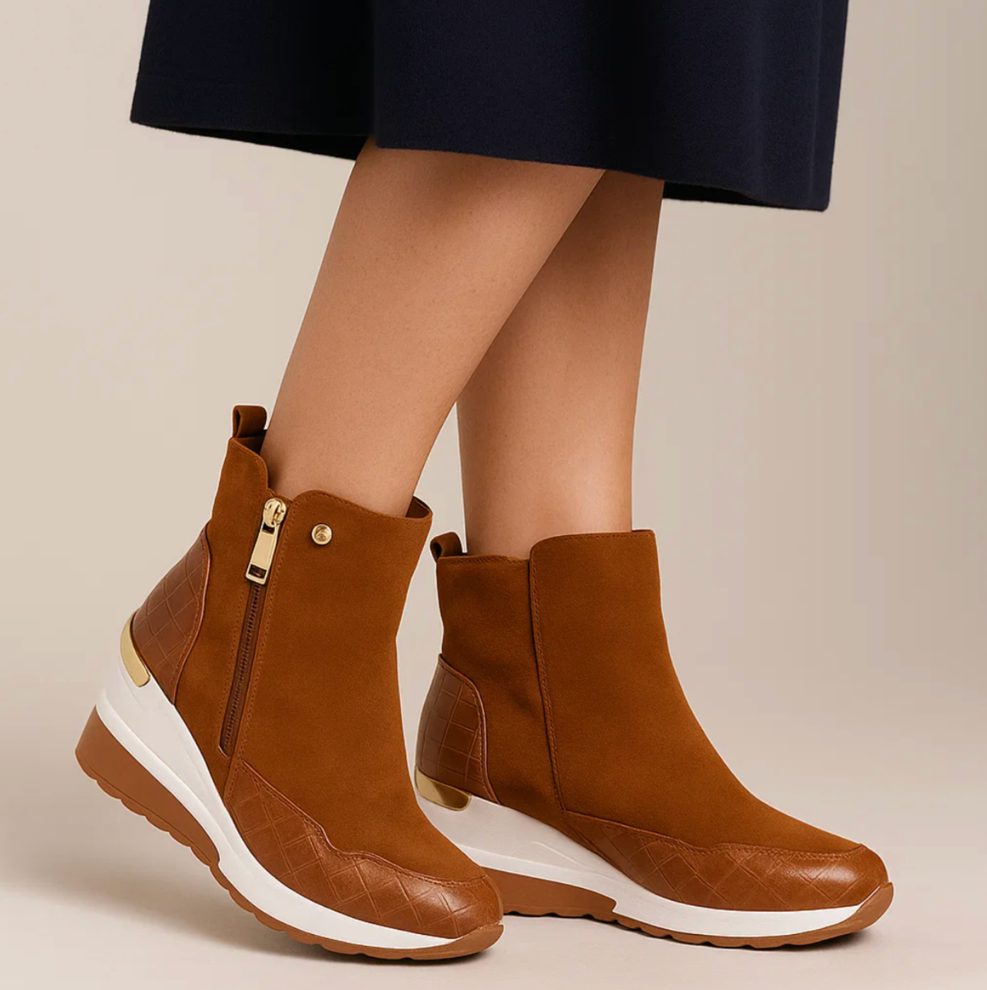 Die Automa Stiefeletten (Lorena) sind die ideale Wahl für Frauen, die täglichen Komfort met een elegante uitstraling willen combineren. Die stilvollen metallic-Details, die bequeme Wedge-Sohle und der praktische seitliche Reißverschluss zorgen für een moderne look én eenvoudig aan- en uittrekken.